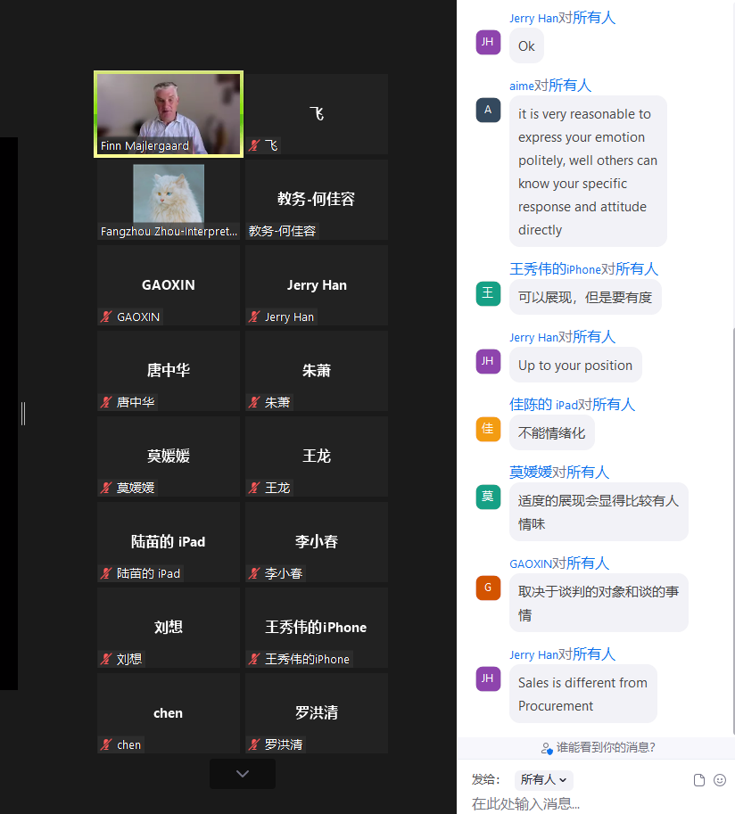 2022年6月11日-6月12日,在全球化的今天,为了让学员们成为更好的领导者、企业的发展者,芬恩-马伊勒加德教授以自己的观点,在线上为在职学位班学生,讲授令人深刻主题为“跨文化领导力”的课程,学员们通过外国教授的观点,对文化、对管理,有了更深的了解。